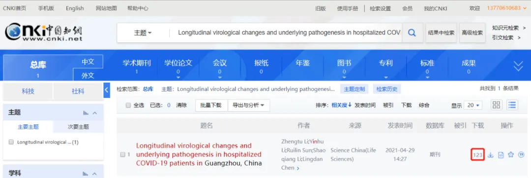 小编在核实情况的过程中发现:钟南山院士被知网偷的不止这两篇!例如发表于2021年被下载了123次的这篇论文: