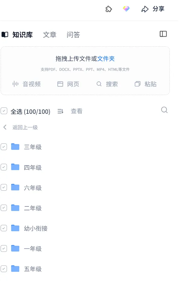 我创建了一个教辅资料知识库,包含幼小衔接、小学1-6年级,初中,高中全套教辅资料,一直在同步更新,
