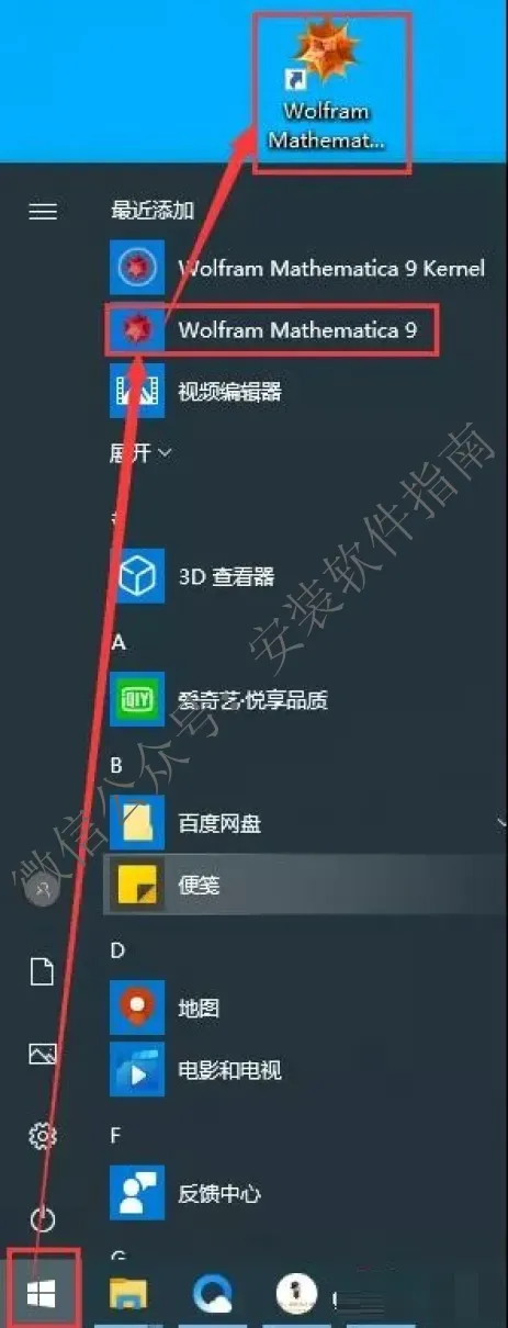 12.软件安装后,桌面不会自动弹出快捷方式,点《开始》在最近添加内找到《Wolfram Mathematica 9》软件,左键按住,直接拖到桌面即可
