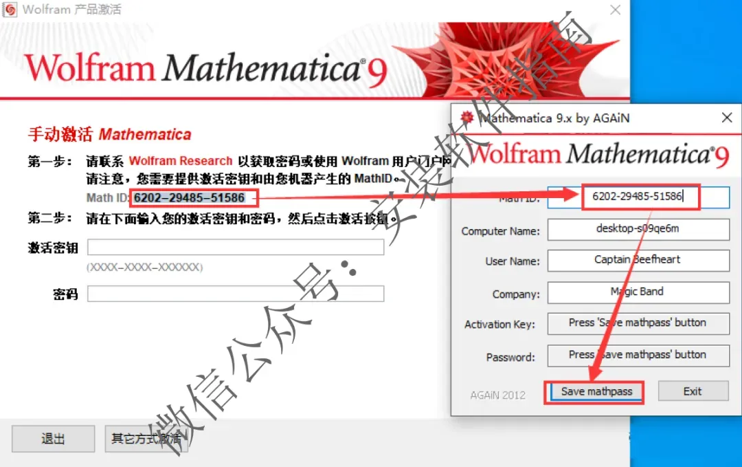 22.将产品激活内的ID,复制到注册机内的ID内,然后点《Save mathpass》