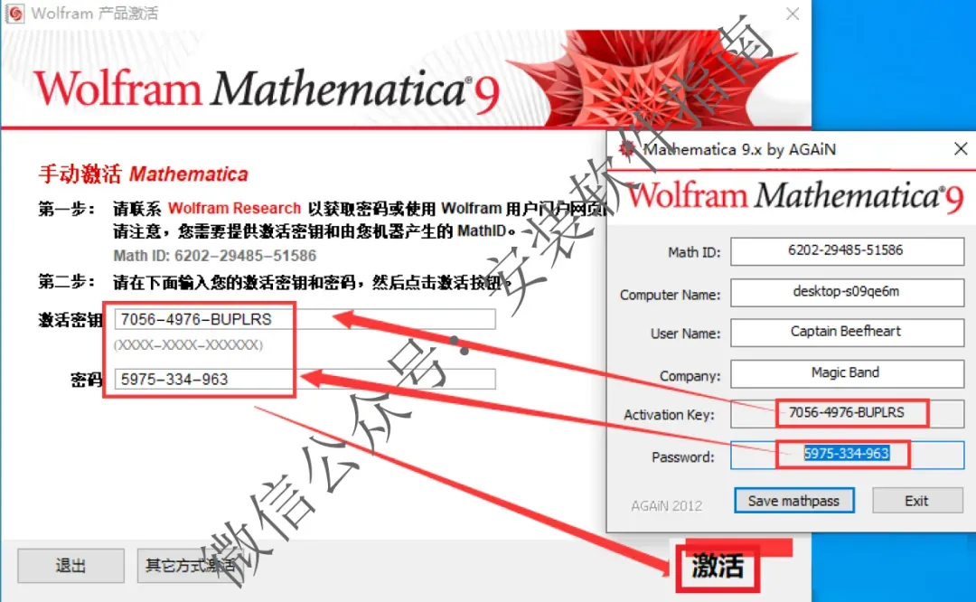24.将注册机内生成的密钥和密码,复制并粘贴到产品激活内。然后点《激活》