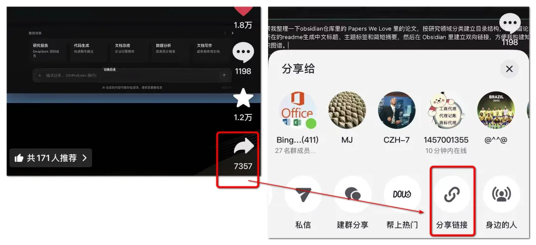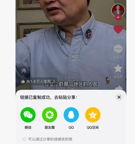 比如某音的视频,无法直接发到微信,只能通过粘贴“暗语”链接分享到微信。