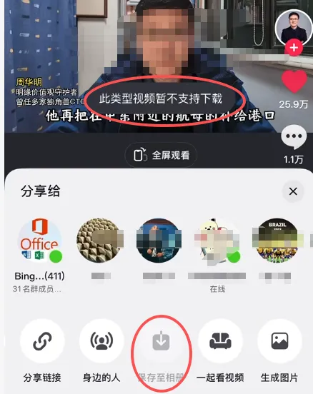 这时,我们可以通过把视频下载下来,再直接从相册中发给朋友。