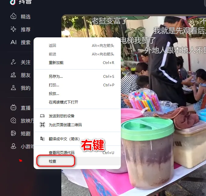 打开浏览器,打开想要下载的视频观看。在网页空白处(注意不是视频界面,是网页空白处),点菜单上的“检查”。