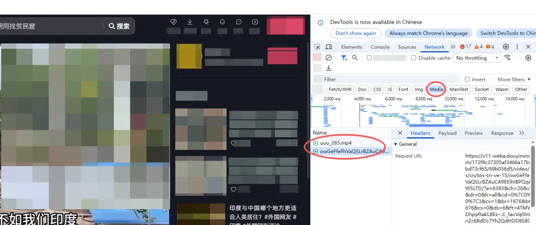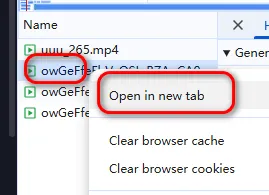 边看视频边按F5刷新,视频缓冲完成后,就会出现视频文件,可能同一个网页上有不同的视频,都会缓存在这里,选择一个视频文件,右键在新网页标签中打开。