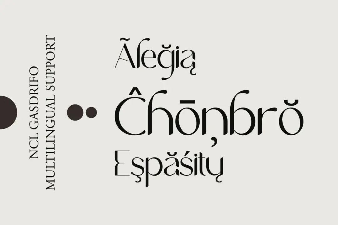 Gasdrifo 专为在大型展示尺寸下带来强烈视觉冲击力而设计,同时在较小布局中保持清晰可读性,非常适合婚礼设计、杂志、海报、网站、品牌形象和高端包装。其优雅的个性和多变的结构使其成为希望为字体增添奢华与精致一丝的设计师的绝佳选择。