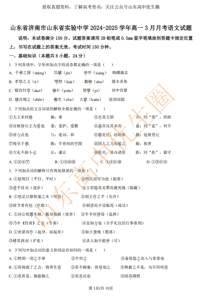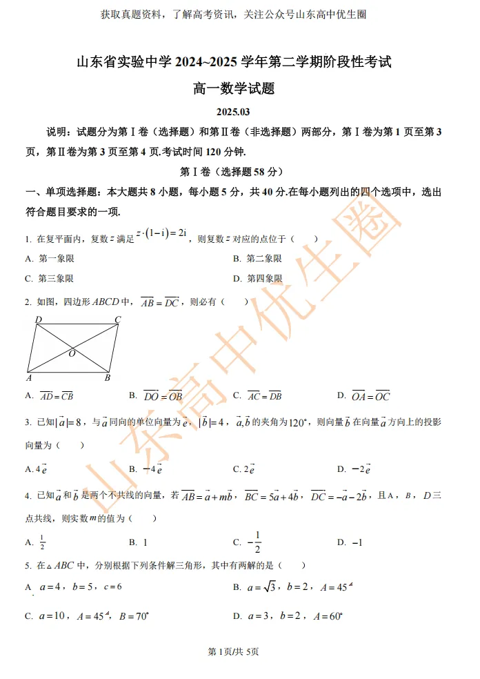 今天小初老师给大家整理25年山东省实验中学3月月考真题。PDF高清版,可以扫描下方二维码免费获取!