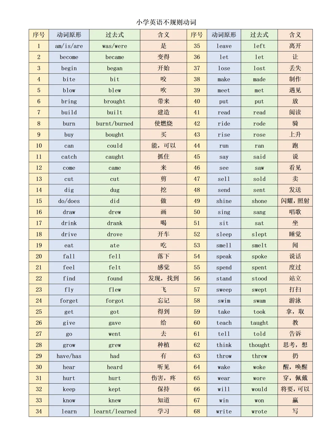 大家好,这里是满分派~同学们,今天为大家整理了的小学英语必背的不规则动词变化,同学们要收藏起来好好背诵哦,家长们也可以督促起来哦。