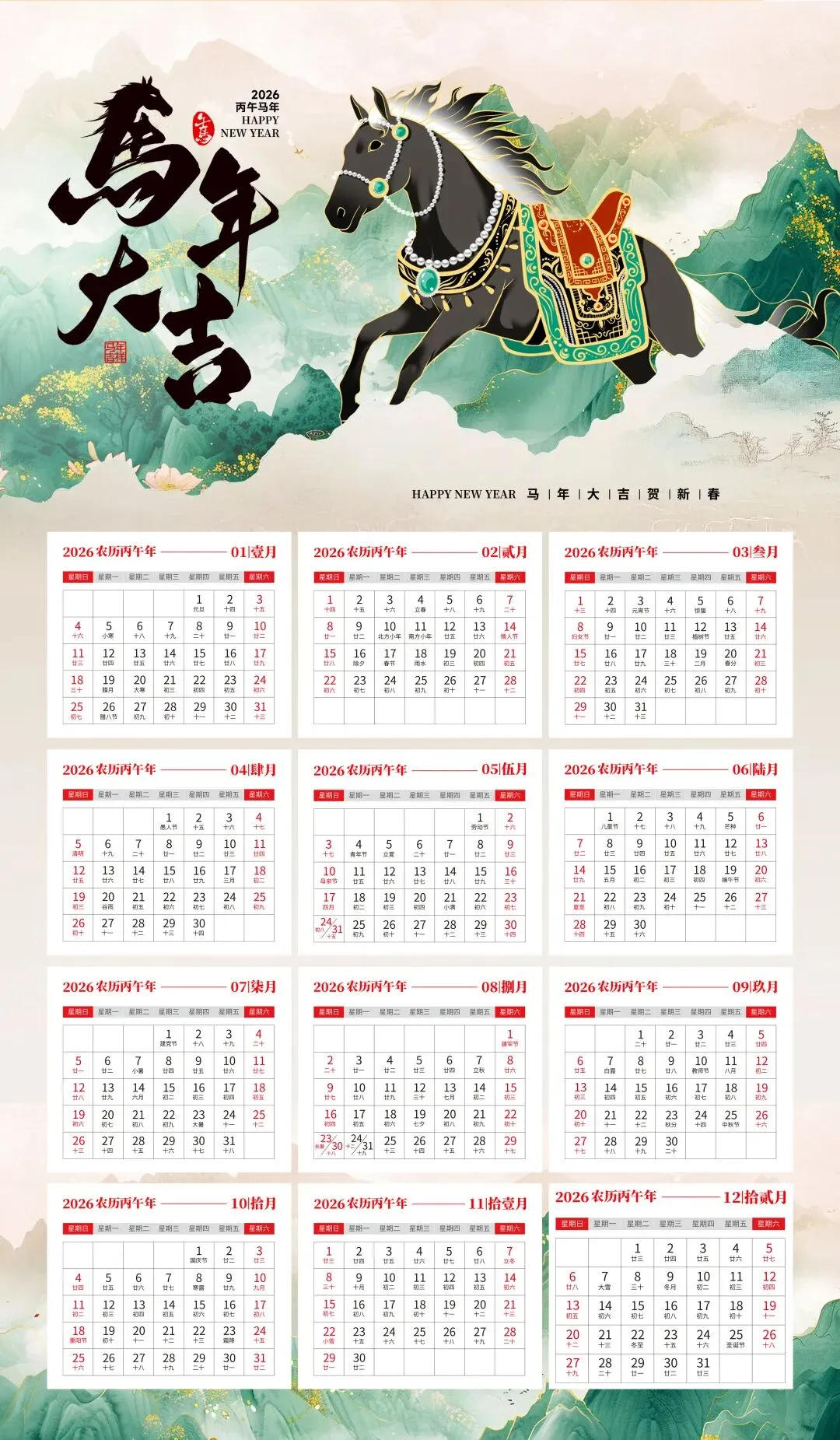 本文内容分享【36套马年日历PPT模板】