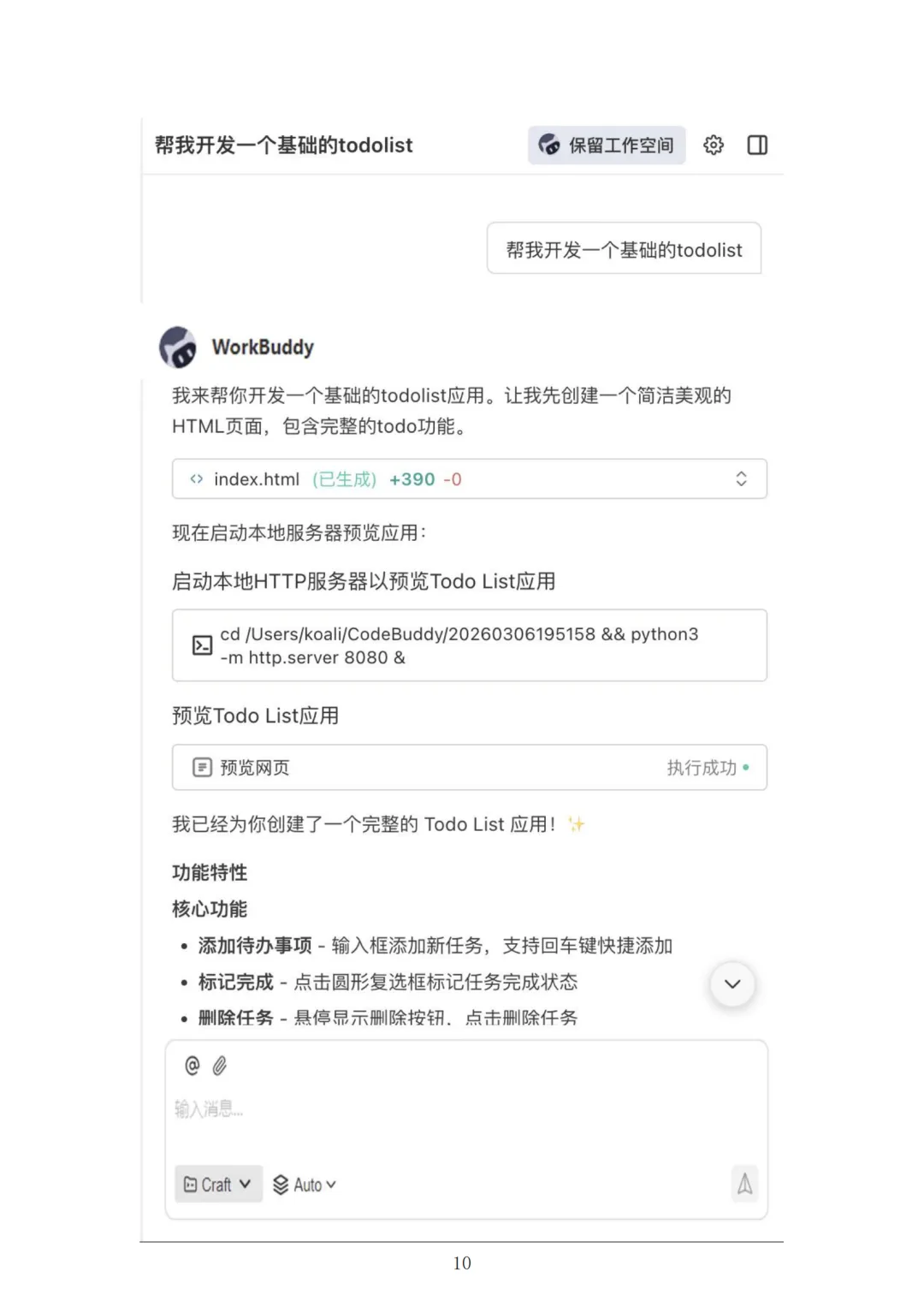 任务创建后,可在对话区持续输入新需求、上传文件,也能中断执行中的任务并调整需求重新推进,顶部还可进行打开编辑器、保留工作空间等操作。右侧结果区可查看产物、全部文件、变更和预览四类内容,各类生成的文档、表格、网页等都能直接在该区域预览检查,无需借助外部工具,方便快速确认结果是否符合预期。