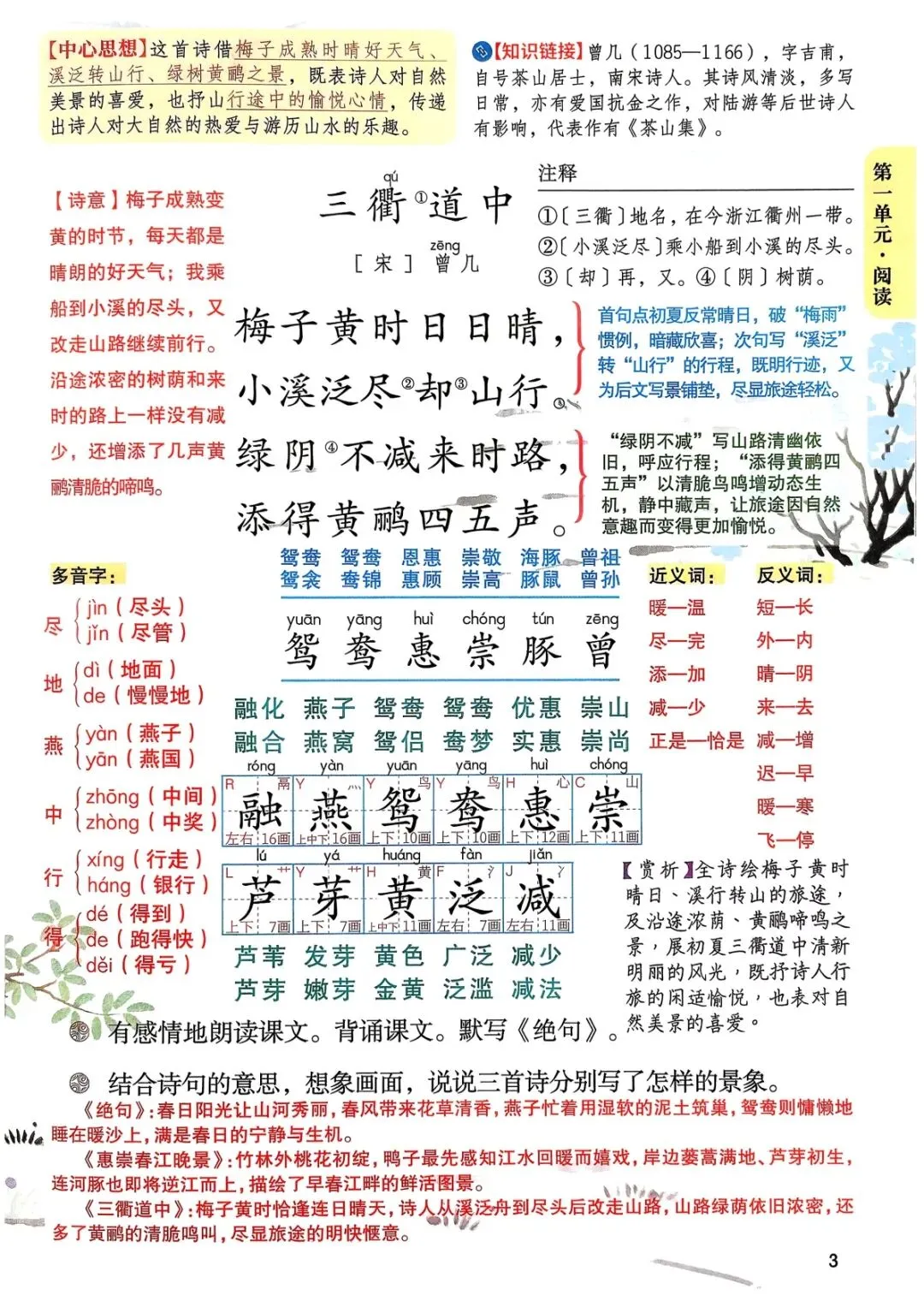 三年级(下)语文 第一单元课堂笔记汇总