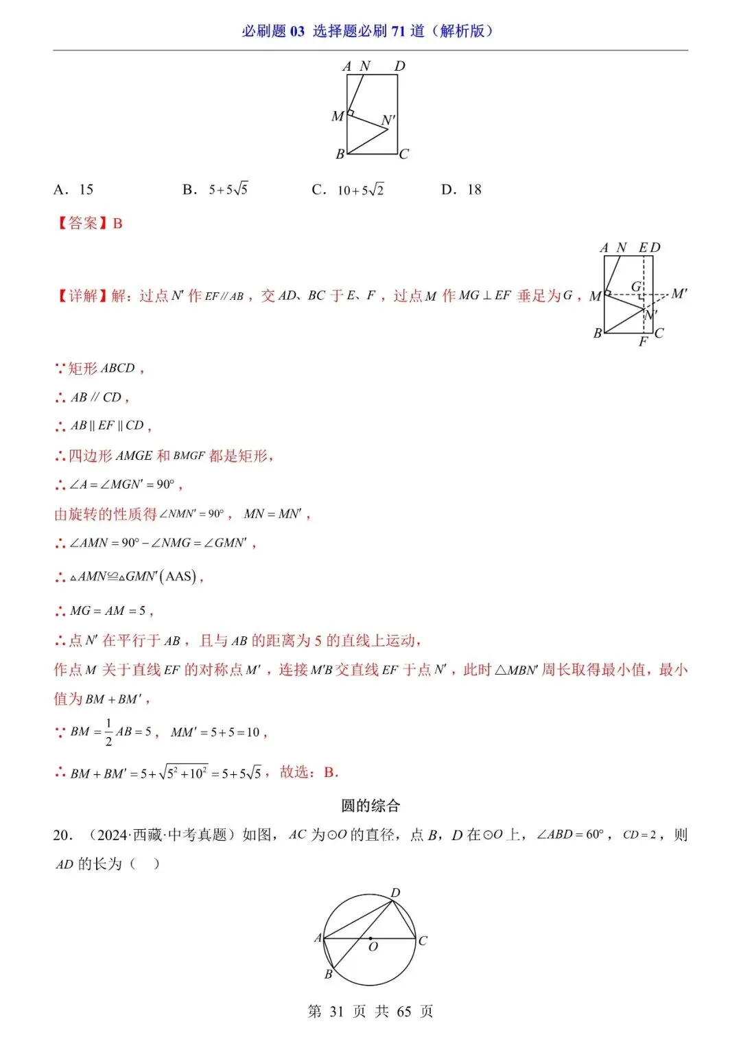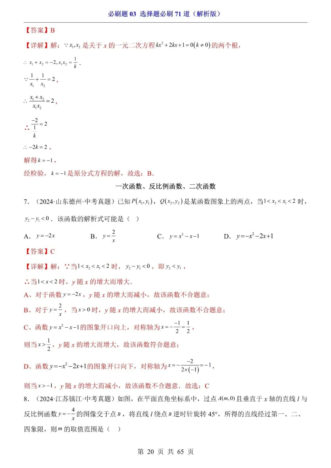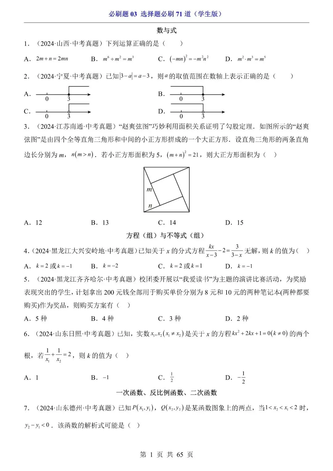 合肥的各位初三家长,最近是不是正陪着孩子备战一模、冲刺中考?翻孩子的数学卷子,是不是总能发现一个扎心的现象:大题步骤写得满满当当,反倒 10 道选择题,动不动就错 3、4 道,十几分一下子就没了?后台太多合肥家长跟我们说:“孩子在寿春中学读初三,数学大题能做出来,选择题总因为粗心丢分,说多少遍都改不了”“四十五中的模考卷,选择最后两道压轴题,孩子直接蒙,4 分一道,蒙错了直接和别人拉开差距”“孩子做选择题总硬算,一道题要算五六分钟,等做完选择,后面大题时间都不够了”“想冲一六八,数学至少要 135+,结果选择题就丢了 8 分,根本没竞争力”在安徽中考里,数学选择题绝对是最容易被忽视,却最能决定分数下限的题型。安徽中考数学满分 150 分,单单 10 道选择题就占了40 分,而且全是单选,没有步骤分,对就是 4 分,错就是 0 分。更关键的是,选择题是整张卷子的开篇,做得顺不顺,直接影响孩子整场考试的心态和节奏。合肥本地名校的老师都在说:数学想冲高分,选择题必须保满分;就算是基础薄弱的孩子,选择题也最多只能错 1 道。可现实是,90% 的合肥中考生,都在选择题上栽了跟头:要么基础题粗心踩坑丢分,要么压轴题没思路蒙错,要么硬算浪费时间,导致后面会做的题也没时间写。为什么孩子刷了无数题,选择题还是总丢分?我们结合合肥四十五中、四十二中、一六八初中部等名校的模考数据,分析了上千份合肥中考生的试卷后发现,孩子选择题拿不到满分,从来不是刷题不够,而是踩了这 4 个致命误区:很多孩子觉得选择题简单,不重视基础概念,实数运算、分式方程、特殊四边形性质、统计概率这些基础考点,看似简单,却藏着无数易错点,孩子一知半解,考试里稍微换个说法,就直接踩坑。选择题只看结果,不看过程,有很多秒杀技巧、排除法、特值法能用,但 90% 的孩子都只会按大题的方式硬算。一道题本该 1 分钟出答案,孩子算了 5 分钟,不仅浪费时间,计算步骤多了还特别容易出错。网上的选择题题库鱼龙混杂,很多题要么超纲,要么和安徽中考的命题偏好完全不符。孩子刷了几百道题,却没练到安徽中考的核心考点和高频题型,白用功不说,还偏离了中考复习的节奏。很多孩子选择题做错了,就只是改个答案,既不分析错误原因,也不总结同类题型的解题方法。同样的坑,这次错了下次还错,刷再多题也没法提分,分数始终卡在瓶颈期。专为安徽中考生打磨!这份 71 道选择必刷题,到底强在哪?今天给合肥家长们带来的这份《2026 版中考数学选择题必刷 71 道》,完全对标安徽中考考纲,贴合合肥本地教研方向,是初三孩子冲刺中考数学、拿下选择满分的核心利器,和网上东拼西凑的题库完全不一样!✅ 7 大模块全覆盖,100% 匹配安徽中考选择题考点这份题库严格按照安徽中考数学选择题的命题范围,拆解为 7 大核心模块:数与式、方程 (组) 与不等式 (组)、一次 / 反比例 / 二次函数、特殊三角形与全等相似、平行四边形与特殊平行四边形、圆的综合、统计与概率,安徽中考选择题考什么,这里就练什么,不做任何无用的超纲延伸。从基础必考题到选择压轴题,层层递进,完整覆盖安徽中考选择题 100% 的考点,孩子刷完这 71 道题,就能把中考选择的所有题型、所有考点全部过一遍,做到心中有数。题库里的每一道题,都经过教研团队层层筛选,绝非网上随便拼凑的杂题:· 精选 2024 年全国中考真题,只保留贴合安徽中考考情的优质题型· 收录 2025 年安徽本地名校一模、二模核心考题,适配合肥本地教研重点· 搭配万唯原创 2026 中考对标题,精准预判 2026 年安徽中考命题趋势· 特别强化安徽中考选择压轴题专项,函数综合、几何综合、圆的综合,全是合肥孩子最容易丢分的压轴题型孩子刷的每一道题,都贴合安徽中考的出题思路,刷一道顶十道,彻底告别无效刷题。这份题库最核心的价值,不止是 71 道精选题,更是每道题配套的拆解式解析。不同于普通题库只给一个最终答案,我们的解析里,完整讲透了:· 审题关键:教孩子一眼抓住题目核心考点,不读错题、不跑偏· 解题步骤:从公式应用到计算过程,一步步拆解,零基础也能看懂· 秒杀技巧:针对选择题的专属解题方法,排除法、特值法、数形结合法,教孩子 1 分钟快速出答案· 易错提示:点明这道题的出题陷阱,以及安徽考生高频出错的原因,让孩子做一道题,避一类坑孩子做完题,不用等老师讲,自己看解析就能彻底学懂,不仅知道 “答案是什么”,更知道 “怎么想、怎么做、怎么避坑”,真正实现刷一题会一类。数学基础薄弱,选择题总丢分的孩子:从基础题入手,夯实核心概念,把该拿的分稳稳拿住,实现选择零失误;做题速度慢,答题时间不够的孩子:吃透选择题秒杀技巧,把做题时间从 20 分钟压缩到 10 分钟,给后面大题留足时间;中等分数瓶颈,想突破 130 + 的孩子:精准攻克选择压轴题,掌握综合题型的解题思路,补齐短板,突破分数天花板;冲刺一六八等名校,想冲 140 + 满分的孩子:锁定高频易错点,杜绝粗心丢分,打磨答题细节,实现选择题满分,为冲刺名校筑牢基础。2026 年安徽中考的冲刺战已经打响,数学选择题的 40 分,是孩子必须稳稳攥在手里的分数。与其让孩子在茫茫题海里盲目刷题,不如用这份专为安徽中考生打磨的选择题必刷题,精准抓考点、练技巧、避坑点,用最少的时间,实现选择题的满分突破,让数学成为孩子中考