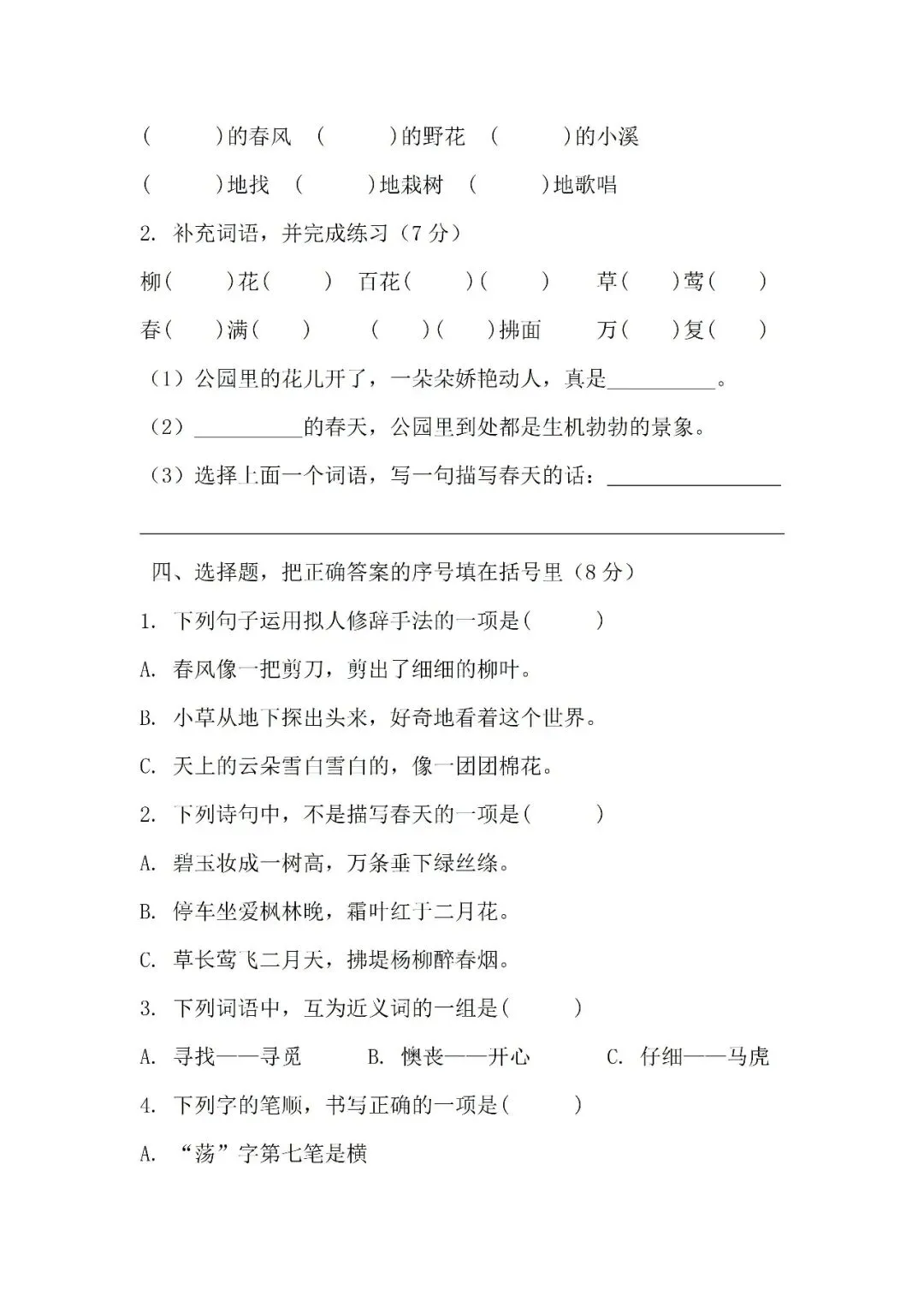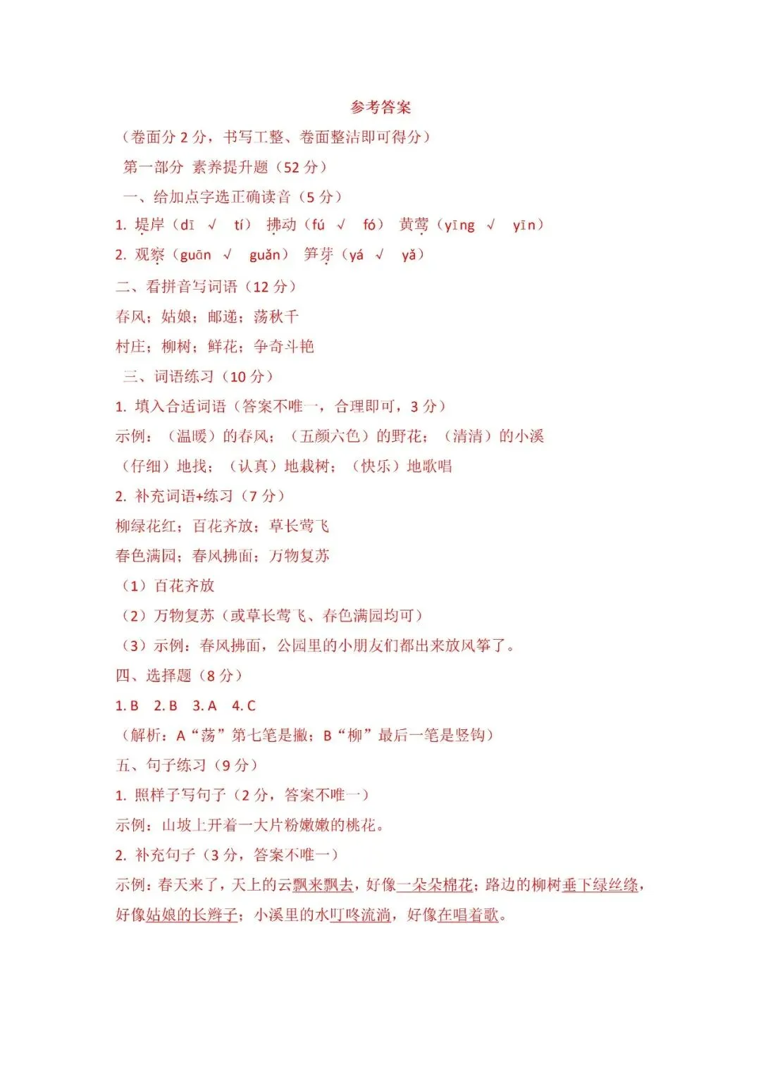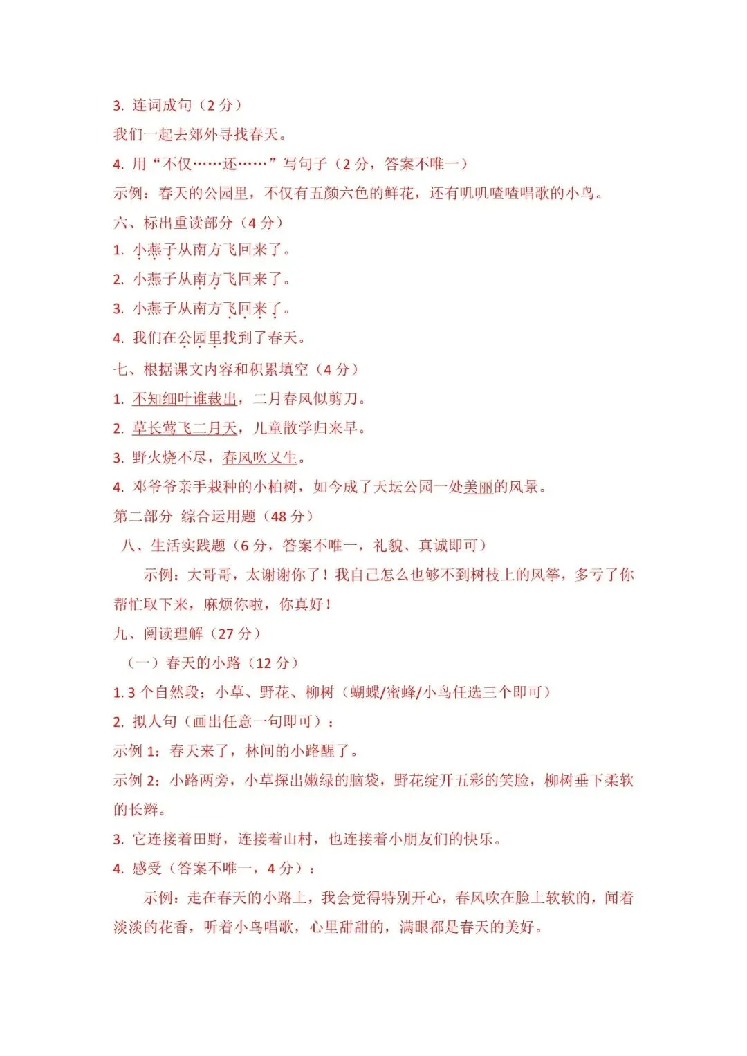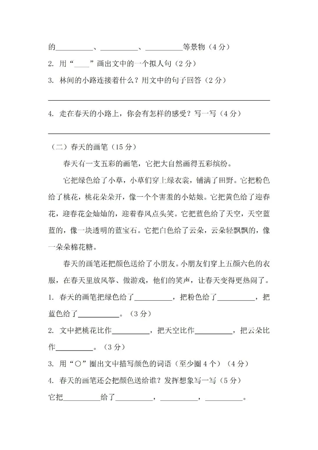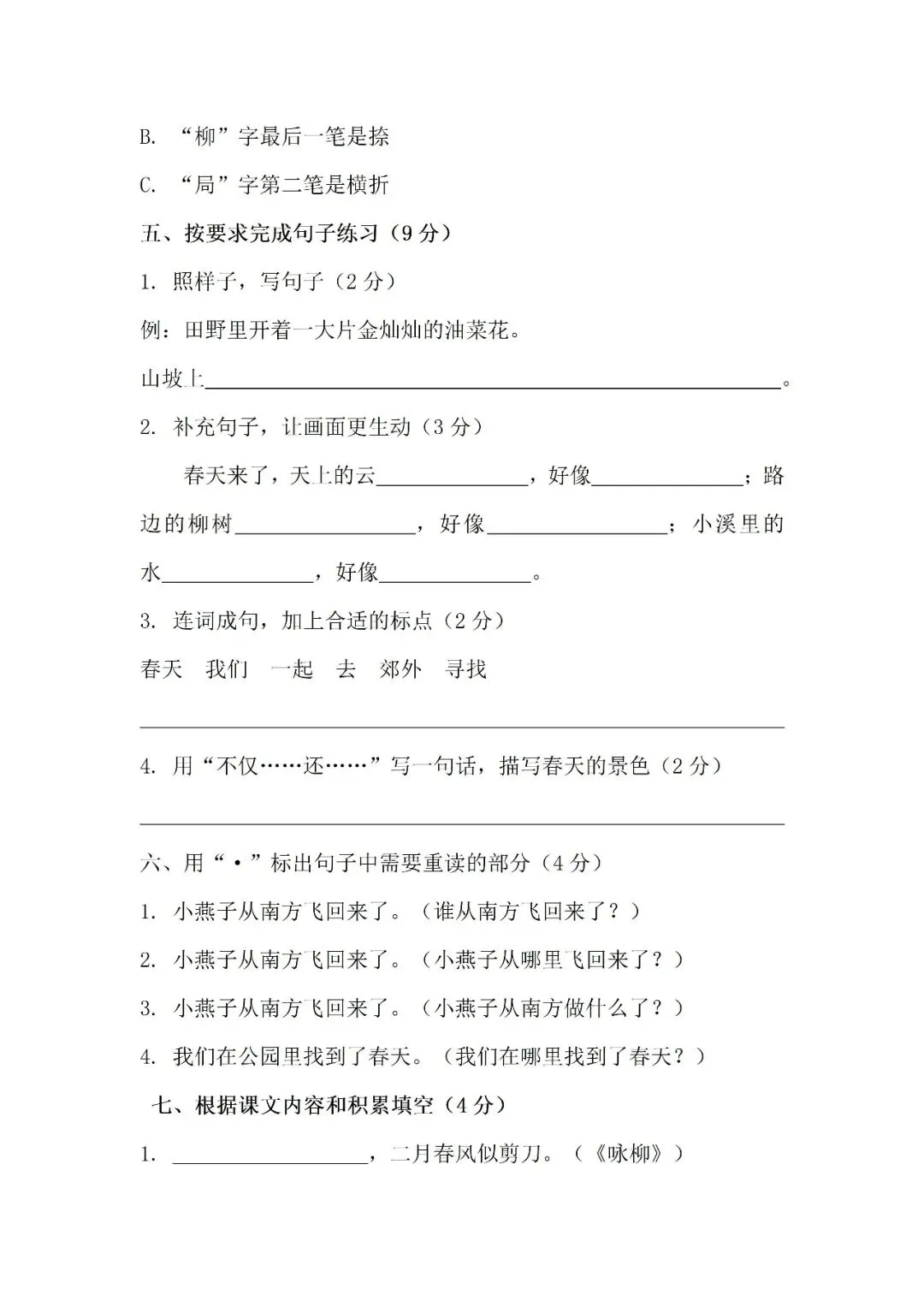 >2026学年二年级下册第一单元测试卷(免费下载)