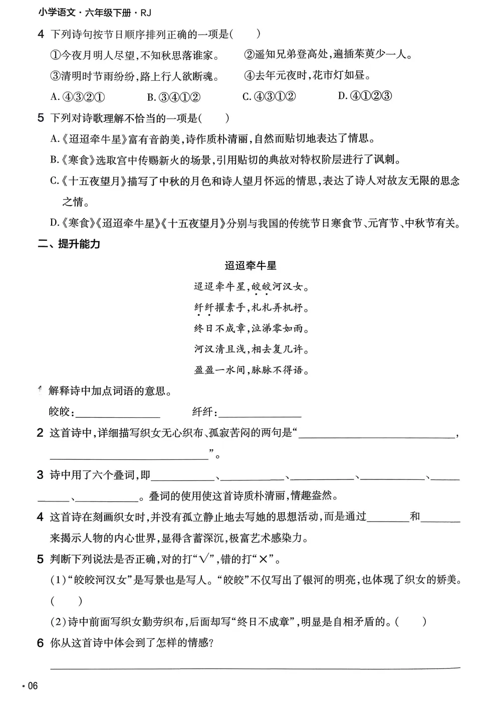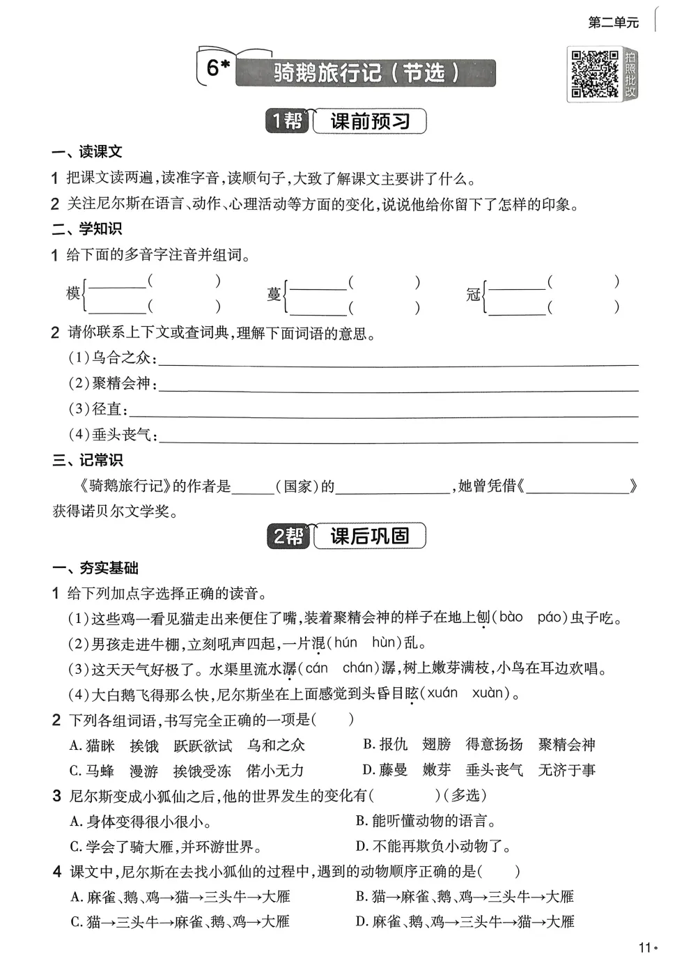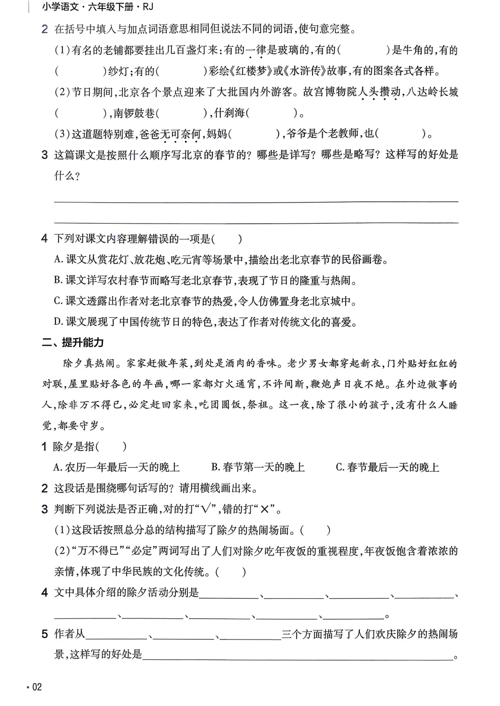 点击下方链接直接下载26春人教部编版六年级下册语文《课本同步练习·一课一练》完整电子版: