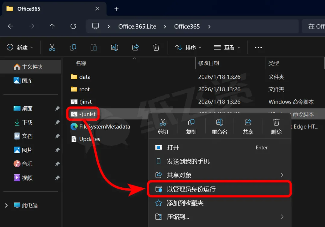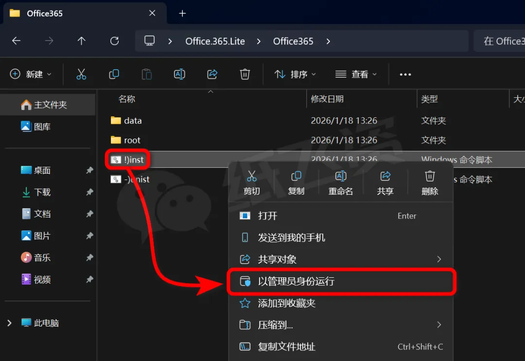 4.右击[inst]选择[以管理员身份运行]