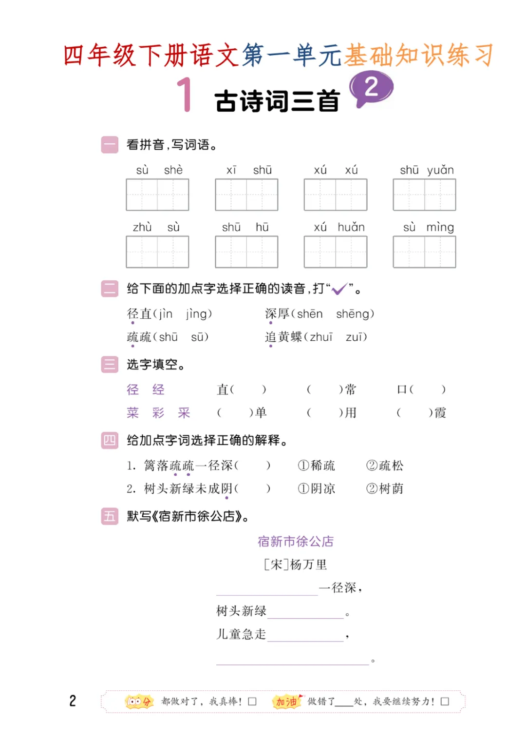 四年级(下)语文 第一单元每课基础知识练习