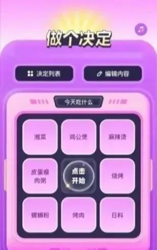 - 场景:吃什么、玩什么、抽签、抽奖、真心话大冒险