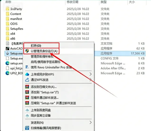 选择Setup.exe安装程序,鼠标右键以管理员身份运行