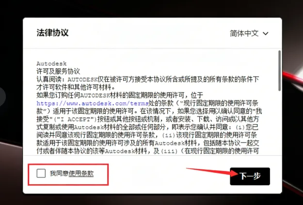 软件安装许可同意勾选,然后点击下一步