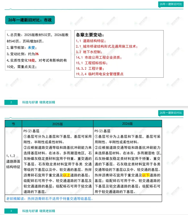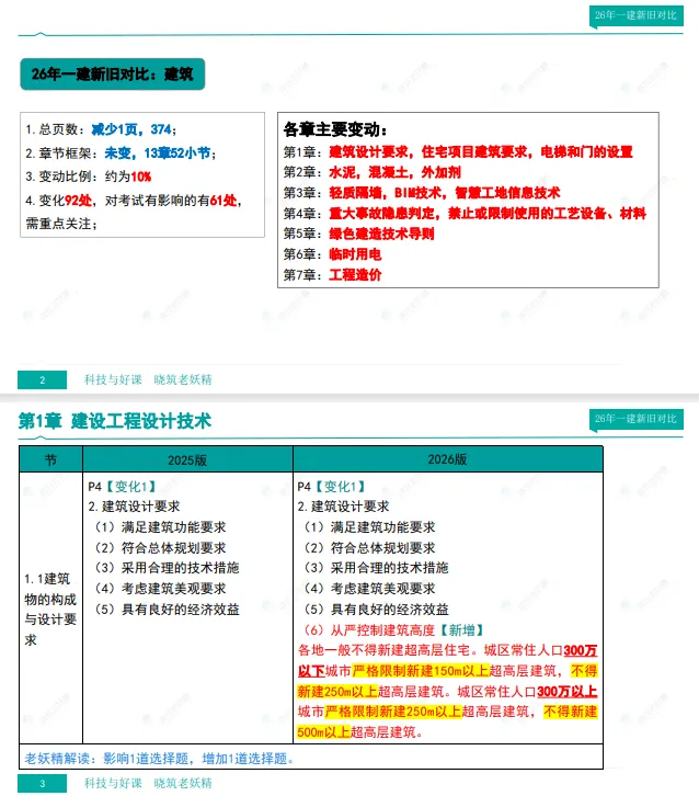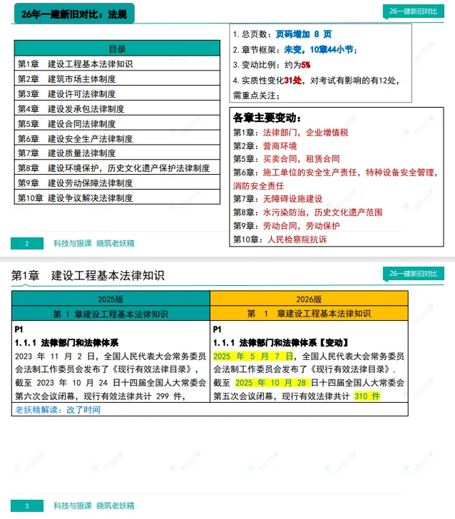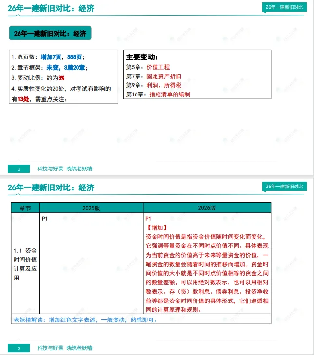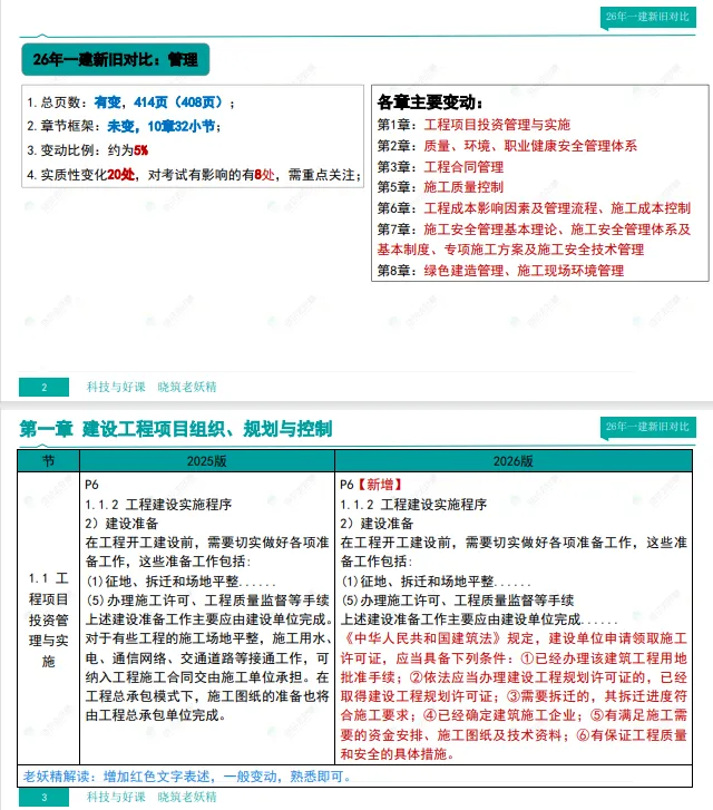 老妖精的老师之前就已经整理好了26一建新旧教材变化——
