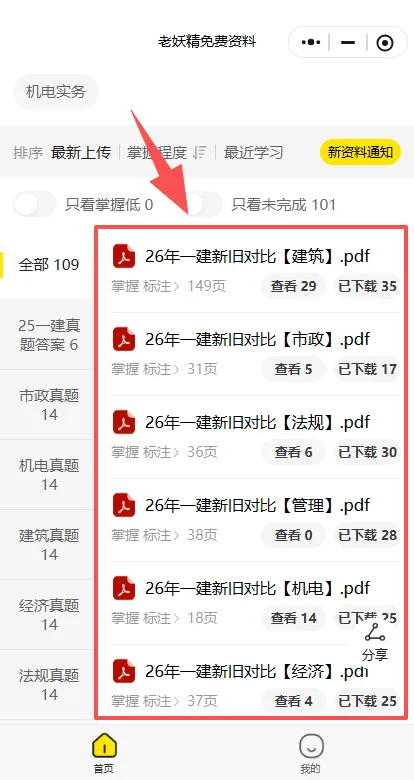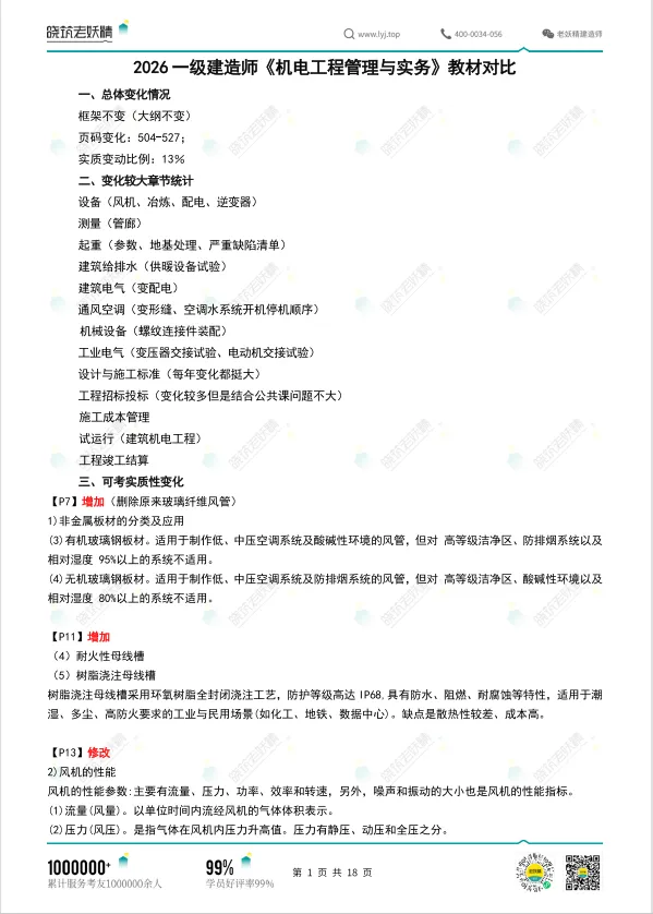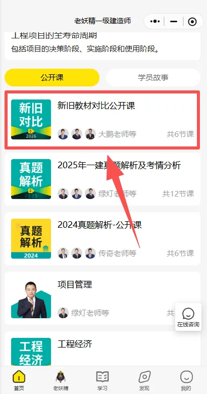 所有一建同学可以在【老妖精一级建造师】小程序的“公开课”栏目免费观看《2026一建新旧教材对比公开课》