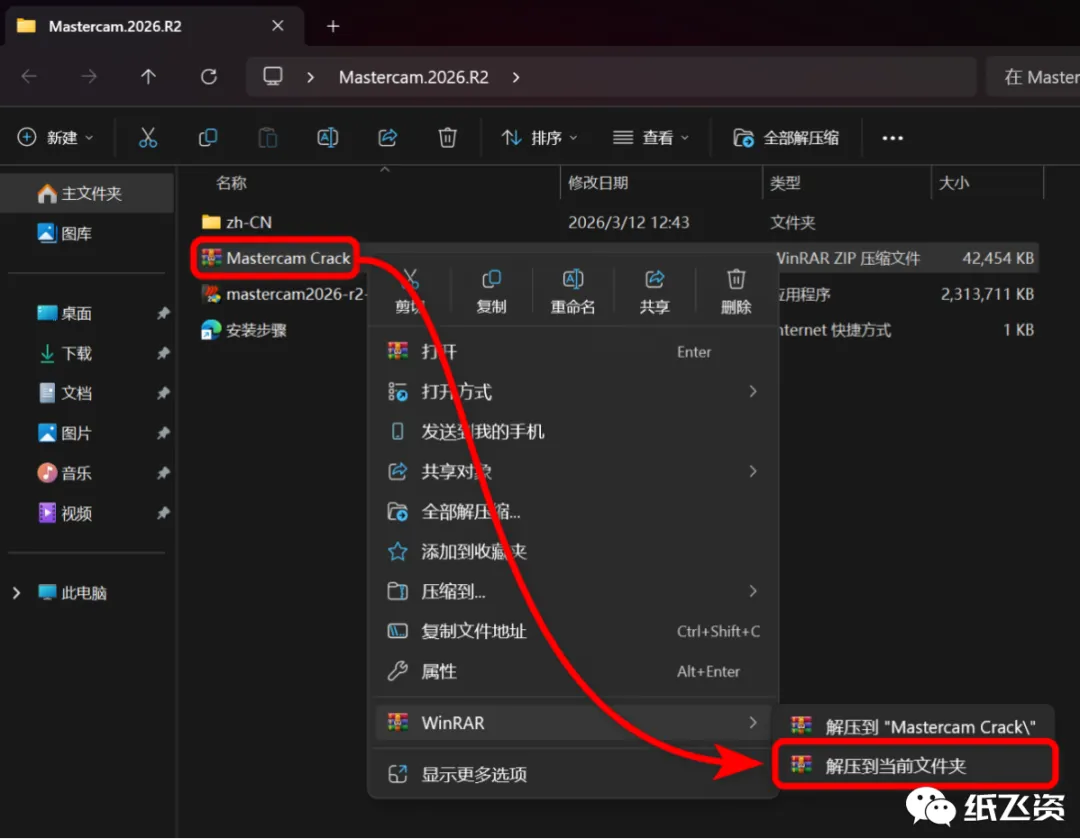 12.右击[Crack]选择[解压到当前文件夹]
