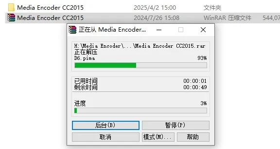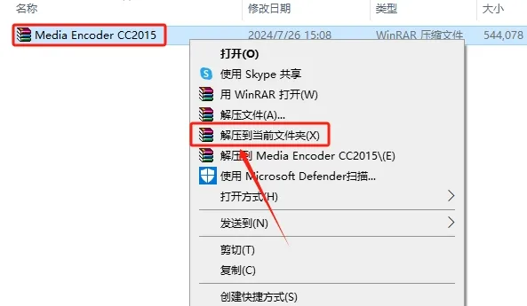 1.打开下载的Media Encoder软件安装包,鼠标右击压缩包选择【解压到当前文件夹】。