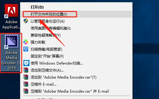 17.鼠标右击【Adobe Media Encoder CC 2015】软件图标选择【打开文件所在的位置】。