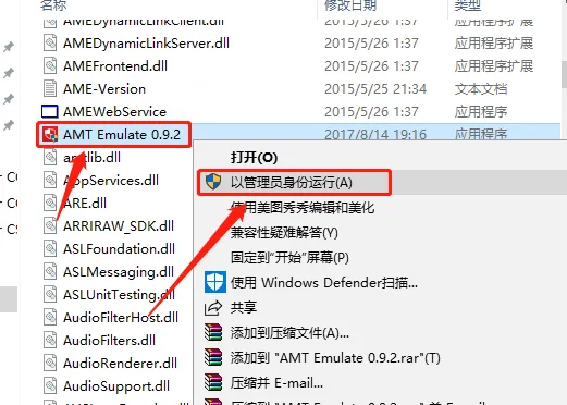 19.找到刚才粘贴的【AMT Emulate 0.9.2】注册机,鼠标右键选择【以管理员身份运行】。