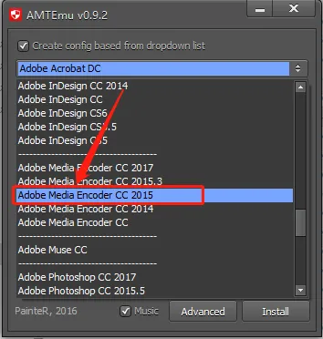 21.下拉找到并选择【Adobe Media Encoder CC 2015】。