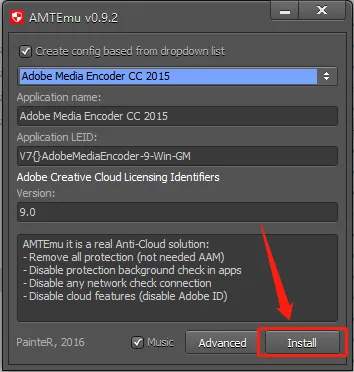 16.返回到解压后的【Adobe_Media_Encoder_CC2015】文件夹中,鼠标右击【AMT Emulate 0.9.2】注册机选择【复制】。