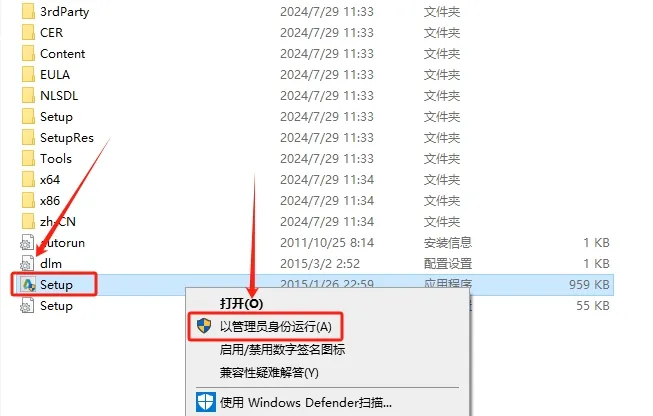 5.鼠标右击【setup】安装程序,选择【以管理员身份运行】。