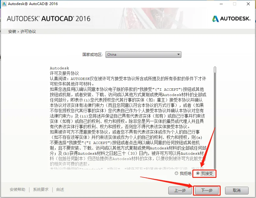 7.选择【我接受】,然后点击【下一步】。