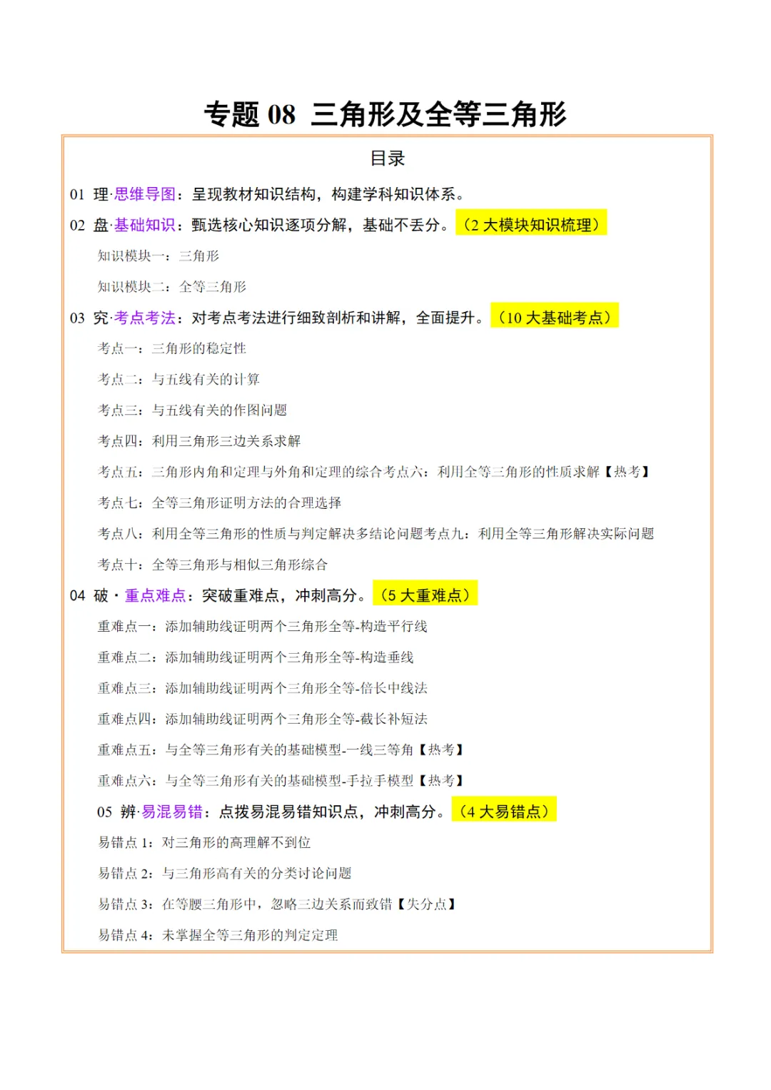 中考专项数学 《专题08三角形及全等三角形》知识梳理+易错专练https://pan.baidu.com/s/1A-EPZ94mumjGO6mjCuxUIA?pwd=8888复制上边链接,微信里发给自己,即可点击保存