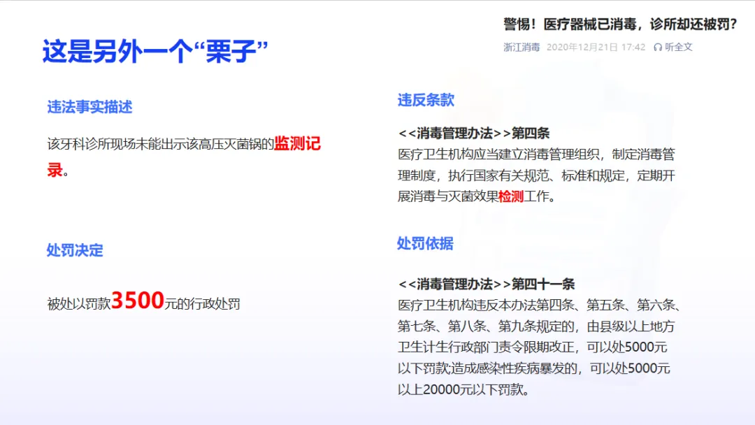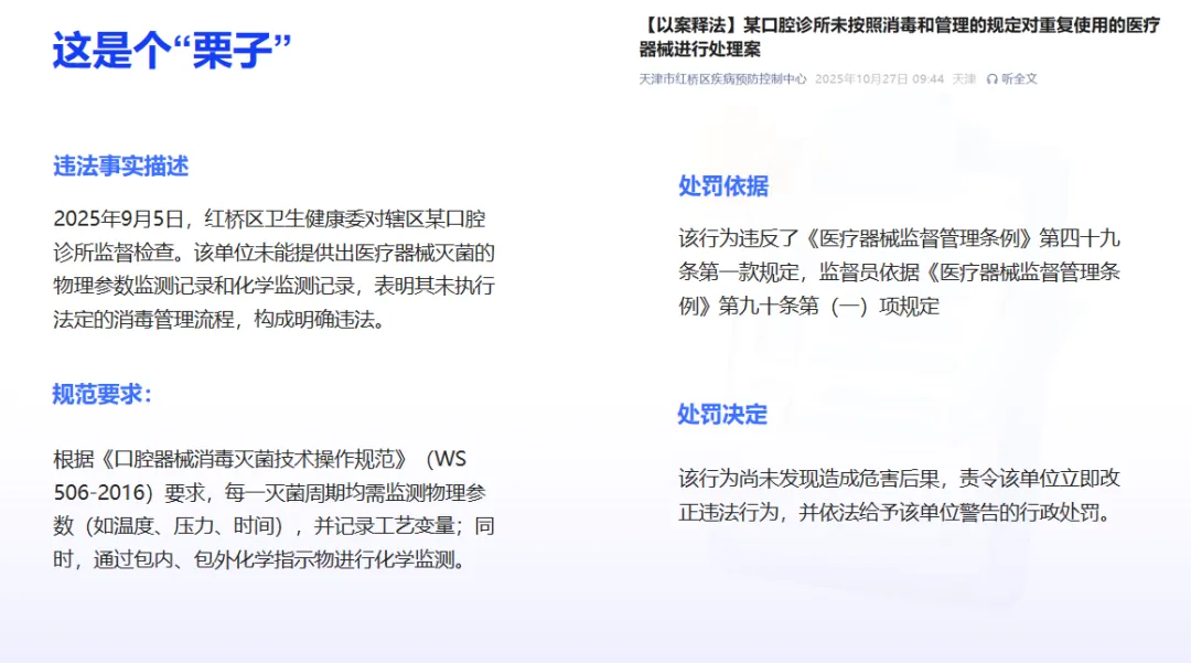 【以案释法】某口腔诊所未按照消毒和管理的规定对重复使用的医疗器械进行处理案