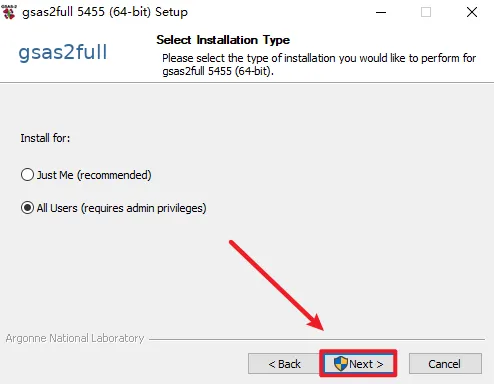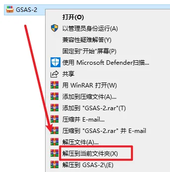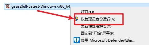 2.打开解压好的文件夹,找到并选中“gsas2full…”,右键选择“以管理员身份运行
