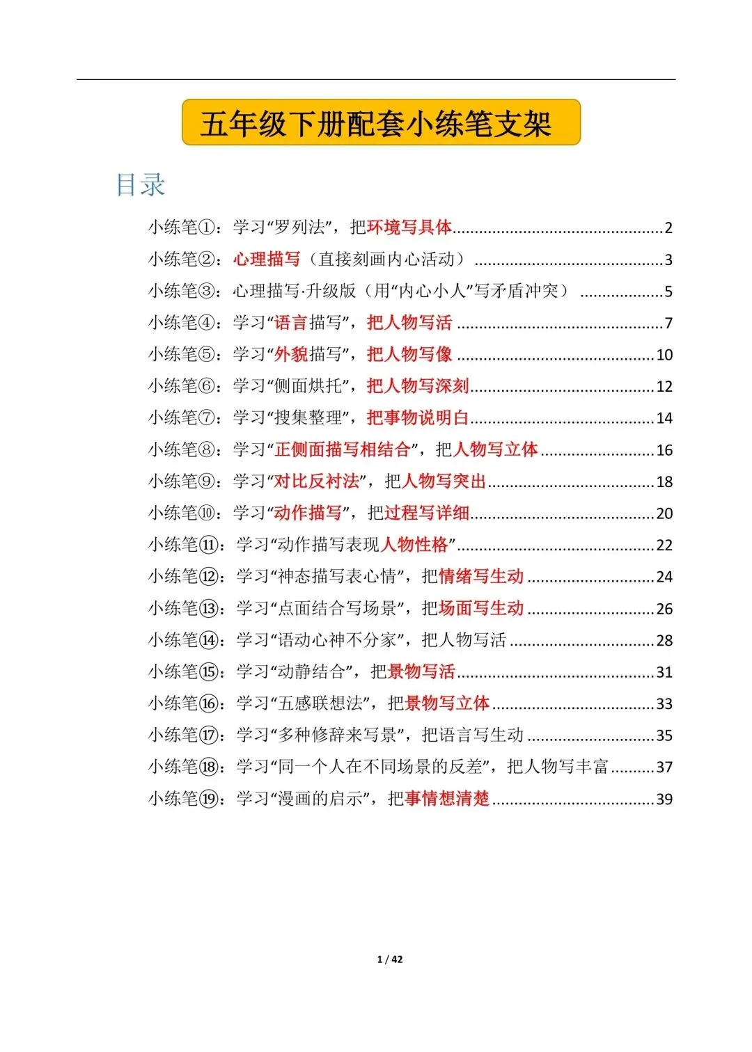 五年级语文下册同步小练笔支架,建议收藏,家长可免费下载打印出来,帮助孩子学习,完整高清电子版,下载方式见文末。