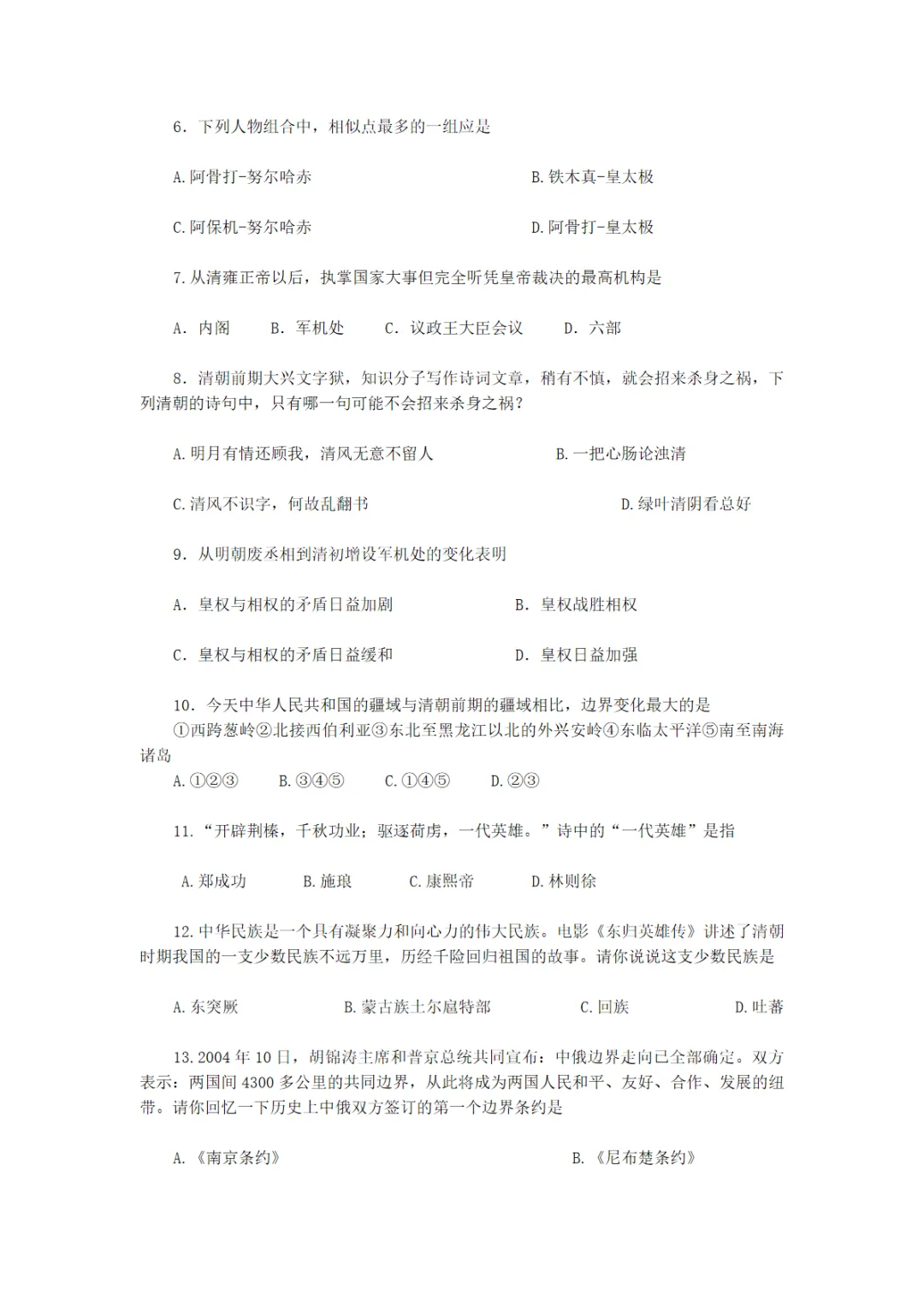 七年级(下)历史 第三单元明清时期:统一多民族国家的巩固与发展测试卷