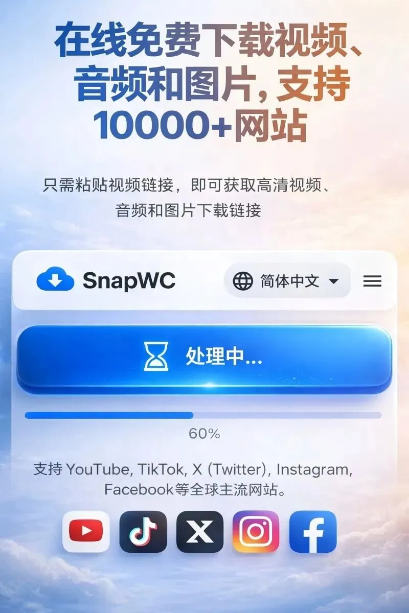 今天给大家分享一个我最近发现的宝藏工具——SnapWC。完全在线使用,不用注册账号,也不用下载安装任何APP,只需要复制视频链接,粘贴进去就能一键解析下载,简单到几秒就能搞定。