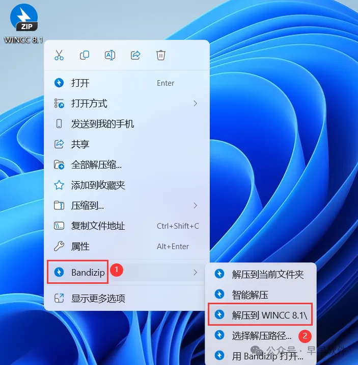 1、下载WINCC 8.1软件安装包到电脑上,右键选择【解压到WINCC 8.1\】