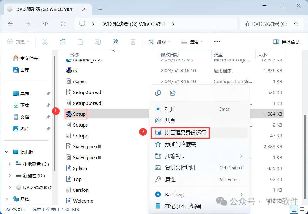 6、找到【Setup】应用程序,右键选择【以管理员身份运行】它