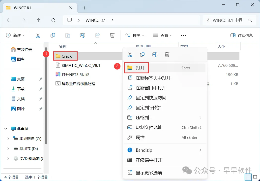 20、回到WINCC 8.1文件夹,找到【Crack】文件夹,右键【打开】它