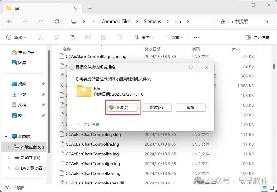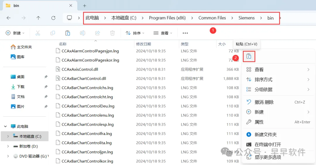 22、打开路径:C:\Program Files (x86)\Common Files\Siemens\Bin,再右键文件夹的空白处,点击【粘贴按钮】