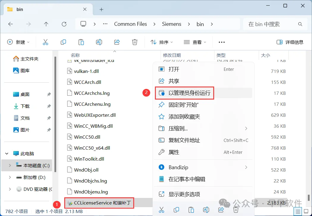 24、找到粘贴的【CCLicenseService和谐补丁】程序,右键选择【以管理员身份运行】它