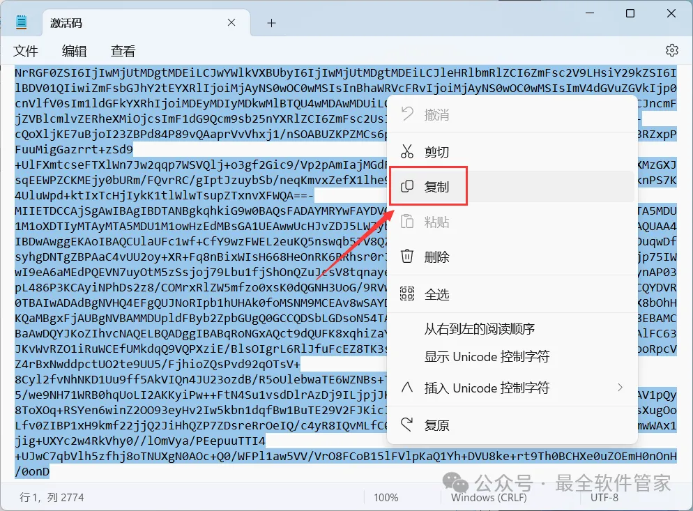 22、回到Crack文件夹,找到【激活码】文件,右键【打开】它