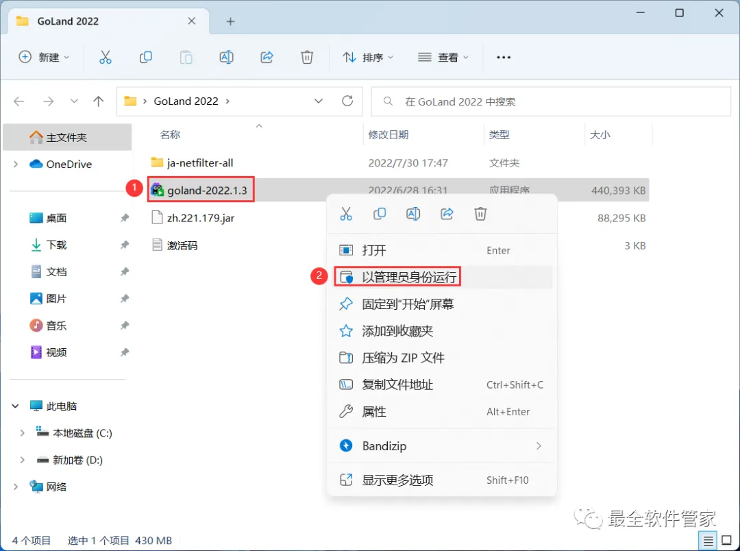 3、找到【goland-2022.1.3】应用程序,右键选择【以管理员身份运行】它