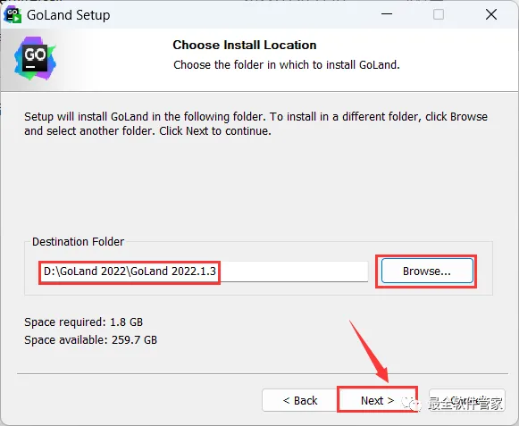 5、软件默认安装在C盘,可自定义更改软件安装位置,这里小编选择安装在D盘;点击【Next】