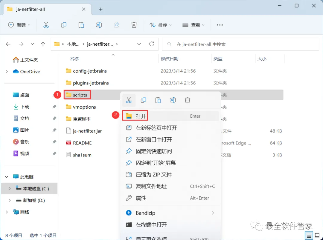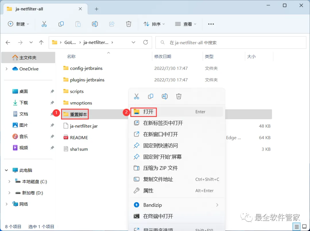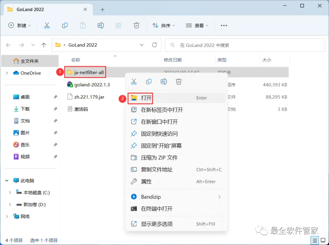 10、回到GoLand 2022文件夹,找到【ja-netfilter-all】文件夹,右键【打开】它