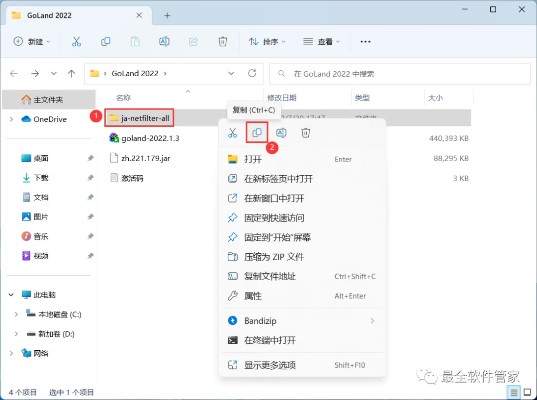 14、回到GoLand 2022文件夹,找到【ja-netfilter-all】文件夹,右键点击【复制按钮】