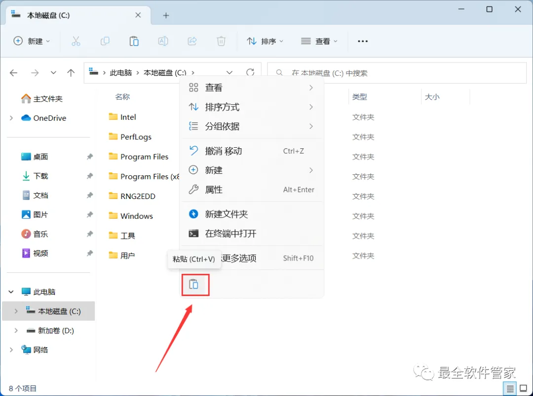 16、右键文件夹的空白处,点击【粘贴按钮】